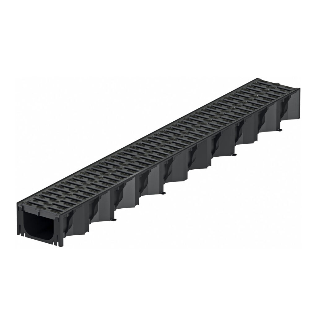 Canal fabricado em polipropileno com grelha de polipropileno com sistema antiderrapante Microgrip.